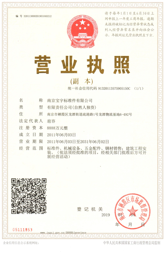 南京寶宇標(biāo)準(zhǔn)件有限公司,專業(yè)標(biāo)準(zhǔn)件,真正廠家直銷,成立于1992年,目前占地面積5萬(wàn)平方米,建筑面積2.6萬(wàn)平方米,現(xiàn)有熱打車間.冷墩車間、搓絲車間,包裝車間、數(shù)控車間、精加工車間、獨(dú)立實(shí)驗(yàn)室,主要生產(chǎn)設(shè)備200多臺(tái)。公司目前擁有約150名員工,其中高級(jí)工程師4名,工程師9名,技術(shù)人員30名。公司專業(yè)生產(chǎn)和研發(fā)碳鋼、不銹鋼、銅 標(biāo)準(zhǔn)件、緊固件和非標(biāo)準(zhǔn)件,產(chǎn)品種類有:螺栓、螺釘、螺絲、螺母、平墊、彈墊、螺柱、組合件、非標(biāo)異型件及精密零件,等多種列。 碳鋼,等級(jí)有:4.8級(jí) 6.8級(jí) 8.8級(jí) 10.9級(jí) 12.9級(jí),不銹鋼,材質(zhì)有:201. 202 .304 .316. 316L.904 .904L 等等。 特別是各種小標(biāo)不銹鋼標(biāo)準(zhǔn)件產(chǎn)品,我公司采用大型進(jìn)口機(jī)械設(shè)備加工,價(jià)格實(shí)惠,有現(xiàn)貨供應(yīng)。購(gòu)買(mǎi)南京標(biāo)準(zhǔn)件,南京緊固件,南京螺絲,南京螺母